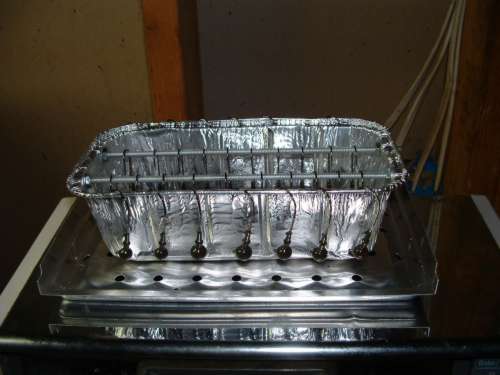 Two curing racks from bread pan (alum foil plus two threaded rods